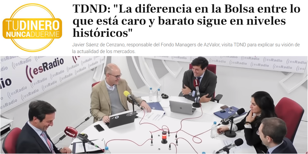 Javier Sáenz de Cenzano, socio de Azvalor y responsable de Azvalor Managers, visita Tu Dinero Nunca Duerme para hablar sobre las últimas novedades ...