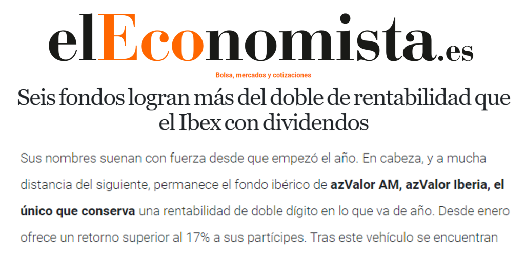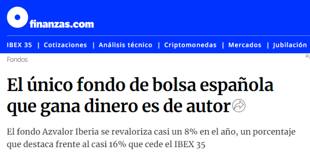 El fondo Azvalor Iberia se revaloriza casi un 8% en el año, un porcentaje que destaca frente al casi 16% que cede el IBEX 35 Un solo fondo de bolsa...