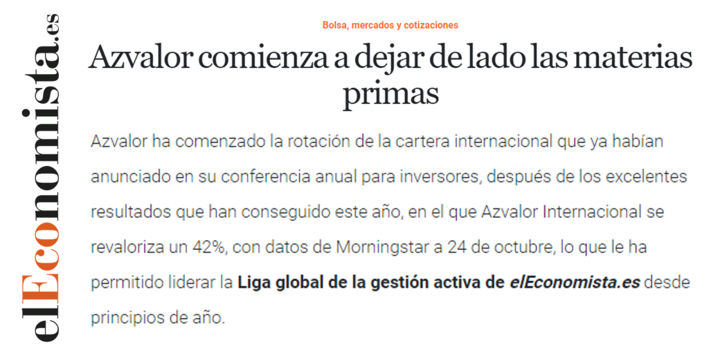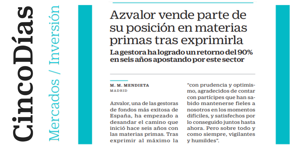 Azvalor vende parte de su posición en materias primas tras exprimirla | Cinco Días