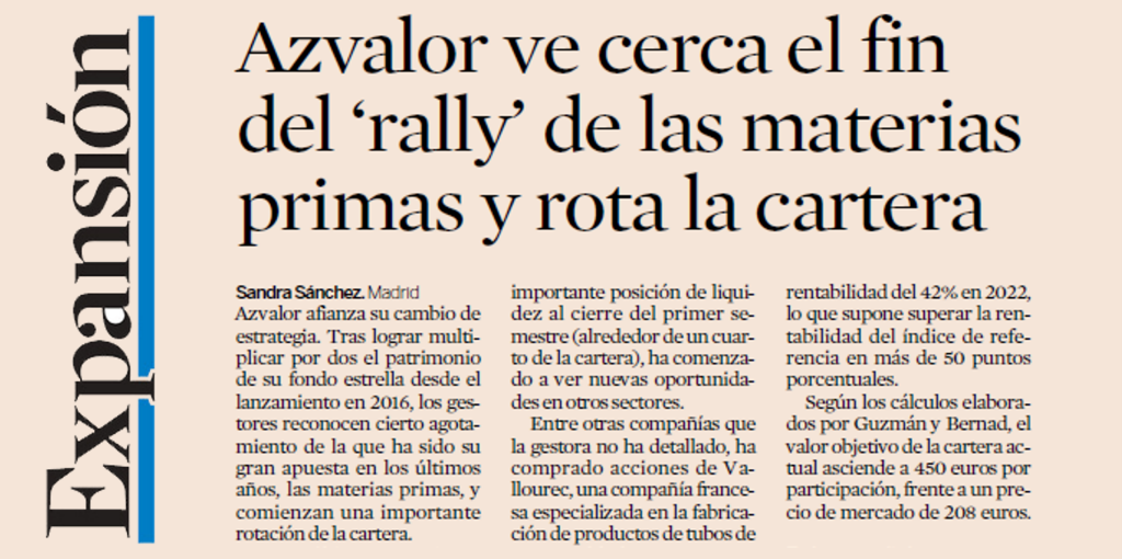 Azvalor ve cerca el fin del ‘rally’ de las materias primas y rota la cartera | Expansión