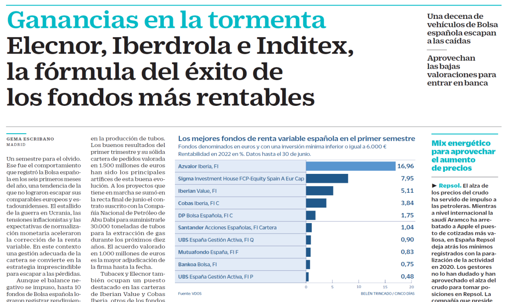 “El fondo estrella de Azvalor se revaloriza un 68% en 5 años” - Cinco Días