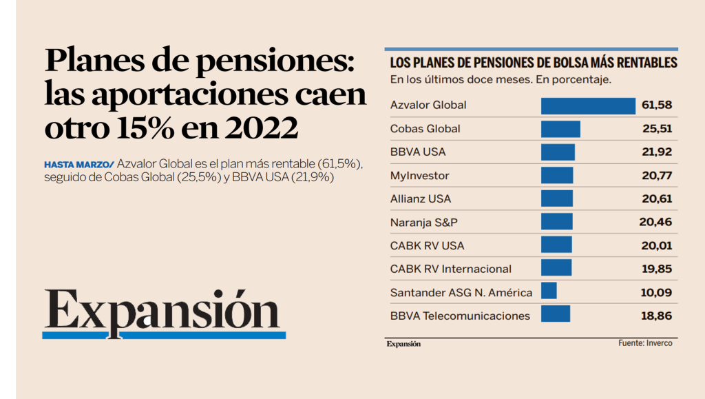 Planes de Pensiones: las aportaciones caen otro 15% en 2022 (Expansión)