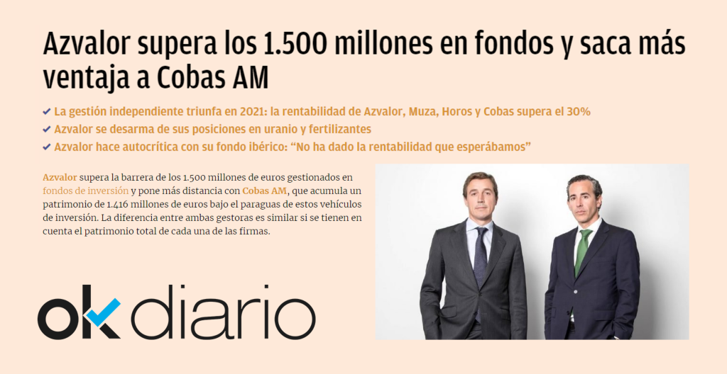 Azvalor supera los 1.500 millones en fondos y saca más ventaja a Cobas AM (okdiario)