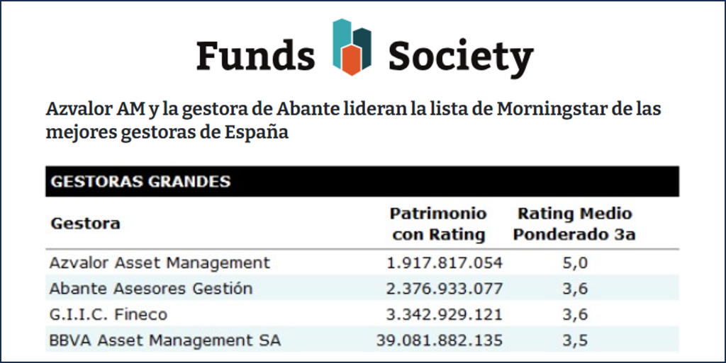 Azvalor y la gestora de Abante lideran la lista de Morningstar de las mejores gestoras de España | Funds Society