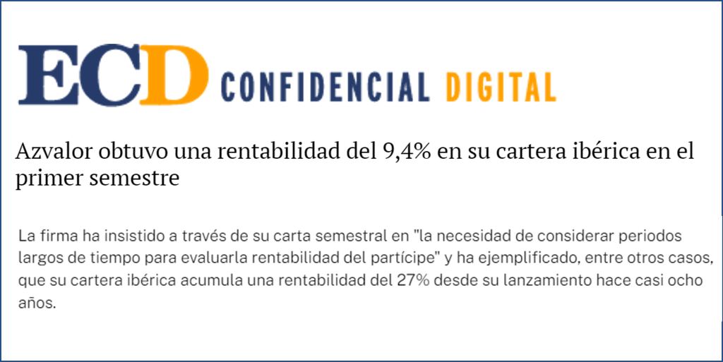 Azvalor obtuvo una rentabilidad del 9,4% en su cartera ibérica en el primer semestre | El Confidencial Digital